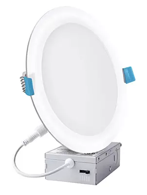 The Euri’s ultra-slim, 5CCT selectable, recessed downlight is designed to give you the option between 2700K/3000K/3500K/4000K/5000K all conveniently in one downlight. Its spring-action clips allow for easy, hassle-free installation with no need for housing, reducing maintenance worries. At 990 Lumens and 12 Watts (100 Watt equivalent) input power, the 6” downlight has an average of 50,000 hours of life and is ENERGY STAR and JA8 certified. The LED Downlight is IC Rated, recessed and best suited for low residential ceilings working on AC 120V. Its edge-lit LED technology guarantees a long life of uniform light distribution.